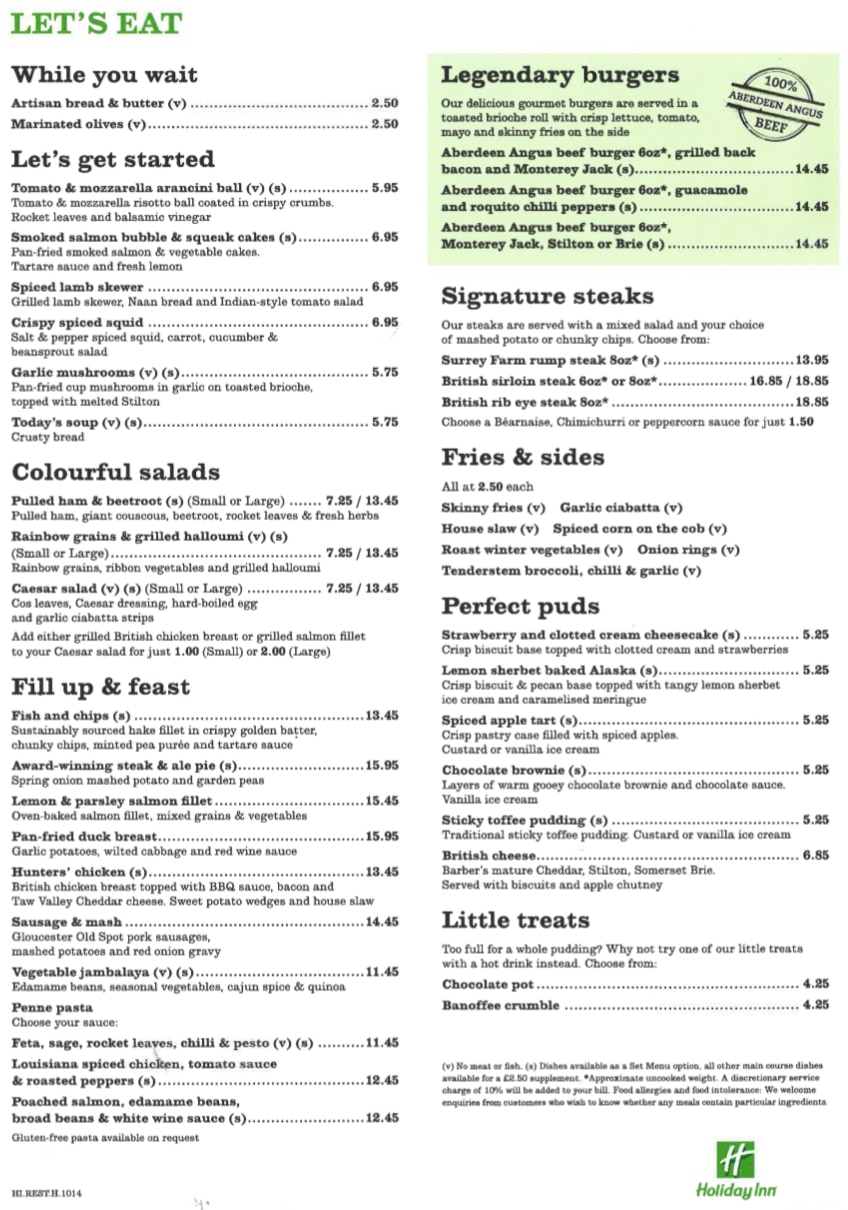 Restaurant menu